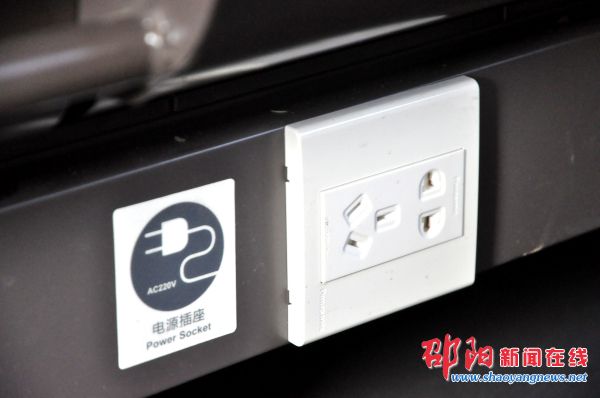 10时30分,高铁从新晃西站出发,记者在车厢内展开“全方位搜索”,寻找沪昆高铁的别样变化。“座位下有充电插座,再也不用为手机没电发愁了!”这是记者最惊喜的发现。记得去年乘坐武广高铁时,还一直对手机半路没电而记忆犹新。现在一个同时带两孔和三孔的插座近在眼前,很能很好地解决乘客的“无电之忧”。