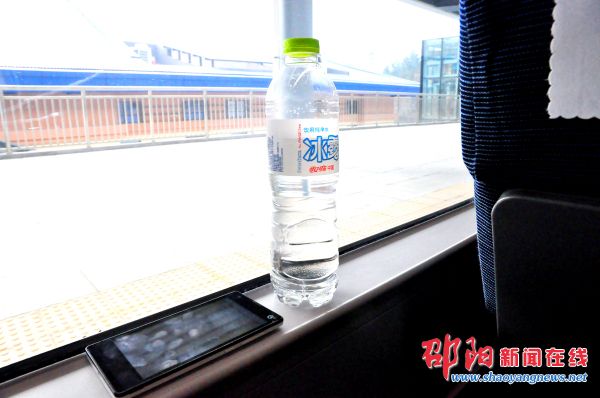 从怀化开往长沙的途中,记者拿出秒表记录了一下时间。由于是试乘车次,中间无需停靠任何站点,从邵阳北站到长沙南站仅耗时39分3秒。高铁在自西向东的行程中实现了一次极速奔跑。