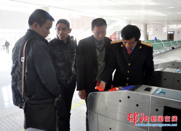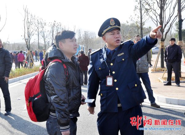 邵阳北站的正式开通,吸引了很多附近的市民前来参观,这也给车站工作人员增加了不少工作量。好奇的市民,都围在进站口,想要去车站里面看个究竟。在进站入口处,负责治安工作的钟伦武一直耐着心,用当地方言劝阻着市民。原来,他是邵阳北站车站派出所的工作人员,家住坪上。“我之前去过长沙、娄底上班,现在能够作为工作人员,见证邵阳北站的开通,我是怀着喜悦的心情在工作。”工作中,钟伦武一直面带微笑,为市民解答着对于邵阳北站的种种疑问。