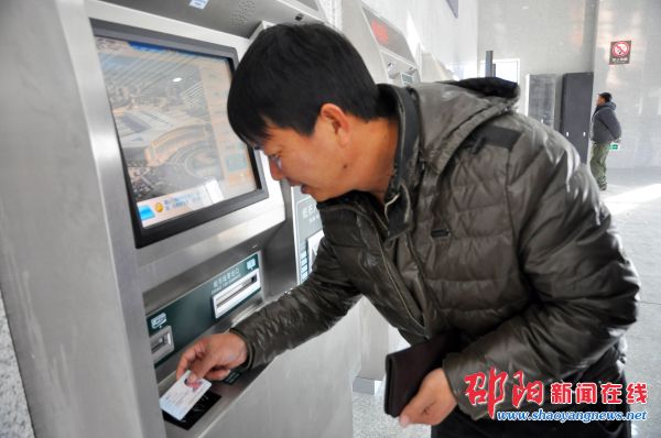 家住车站附近的村民唐先生试着购买前往长沙的车票。申兴刚 摄