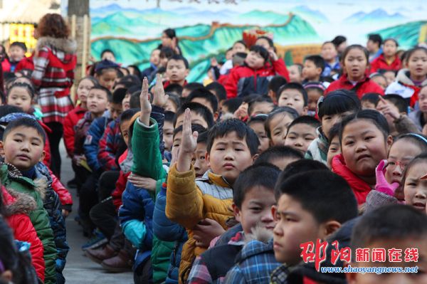 邵阳孩子踊跃回答“笨狼妈妈”的提问。