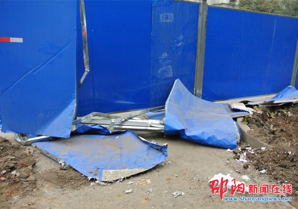 邵阳新闻在线讯(记者 宁如娟 袁光宇)12月起,邵阳市区宝庆西路提质改造,整齐划一的蓝色围挡将施工道路与通行道路、临街商铺分离开来。然而,从施工的第二周开始,不少市民就发现,这些围挡不是坏了半边,就是整体“不翼而飞”了。