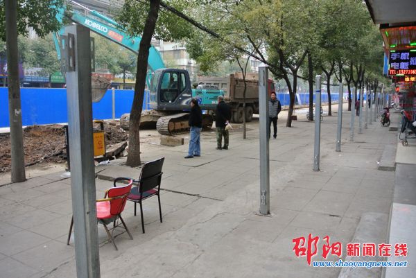 在邵阳医专附属医院附近的路段,挖掘机正在不停地作业。由于围挡被拆除,临街门店与施工道路的距离不到两米。轰轰作响的机械声让临街一家手机店的老板向先生有些担忧,“我把围挡拆了,现在看到施工就在店前,感觉没有安全感,也担心会出事。”