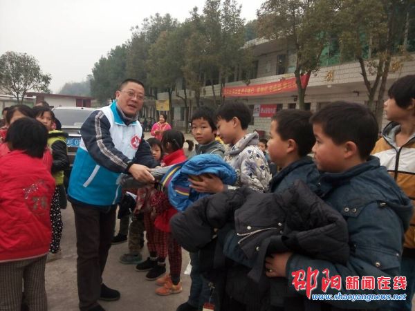 邵阳新闻在线讯(记者 艾哲)12月15日上午以来,由市壹心慈善志愿者联合会、邵阳日报社民生义工站组织的向贫困老人、贫困学生送爱心送温暖活动在邵阳县、新邵县等地的14个点展开。图为邵阳日报社民生义工站的义工曾建伟在邵阳县唯一的民族学校——邵阳县银仙桥民族学校,向20名贫困学生派送棉衣。