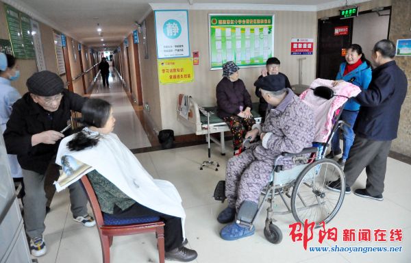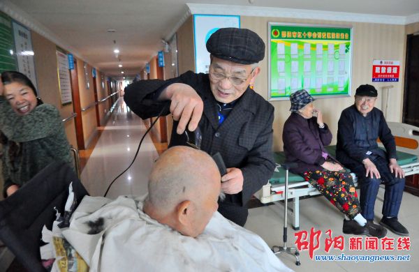 看着田老剪的光头,旁边等候的老人开心地笑了起来。