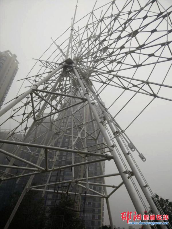 邵阳新闻在线讯(记者 袁光宇 实习生 罗玉莹)“看,摩天轮!”1月14日8时许,路过城南公园游乐设施区的邵阳市民几乎都要抬头看看那座正在修建中的摩天轮。