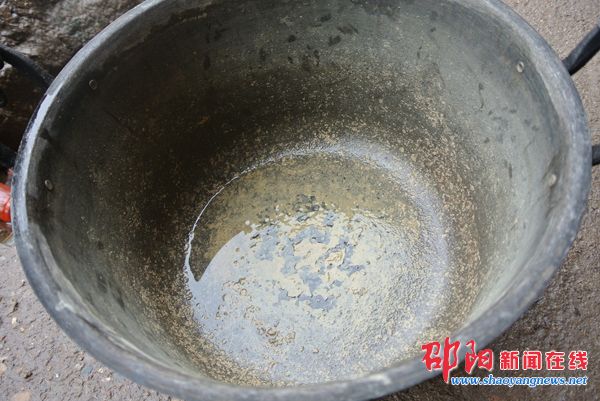 3月10日,在伍翠娥家,记者看到了从井里抽出来的井水,凑近一闻,确实有淡淡的腥味。“每次从外地来的客人,一用家里的井水,皮肤就会长红点点。”吴翠娥家里那几只经常用来烧水的水壶里,积满了发黄的污垢。