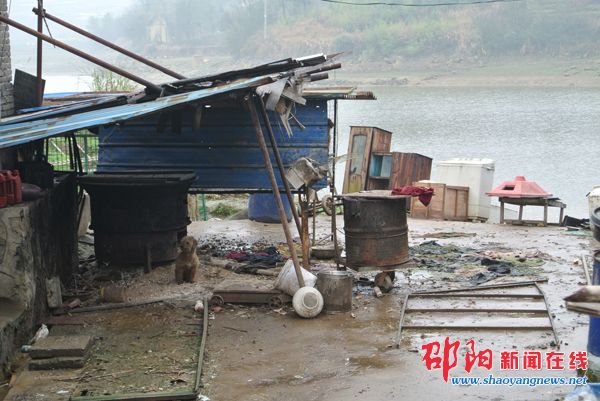 图为解放塘水库旁,原有的养殖场内一片狼藉,散发着恶臭。