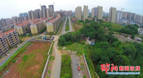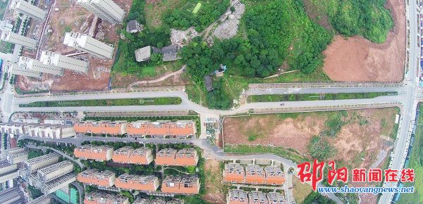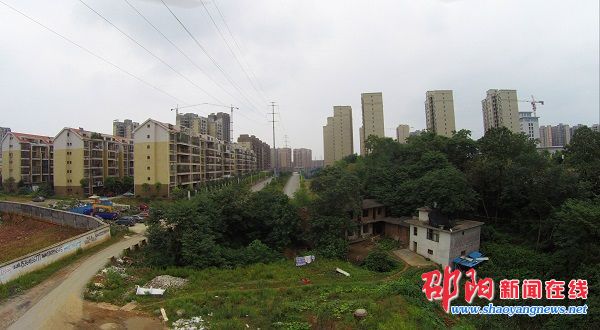 邵阳新闻在线讯(记者 申兴刚 谢冰)在邵阳市大祥区,一条新建的桂花路修了几年至今未能通车,靠近路中间段,一栋民房未能拆迁成为“半岛”,经过此处车辆只能绕行而过。图为7月9日,航拍下的“钉子户”。