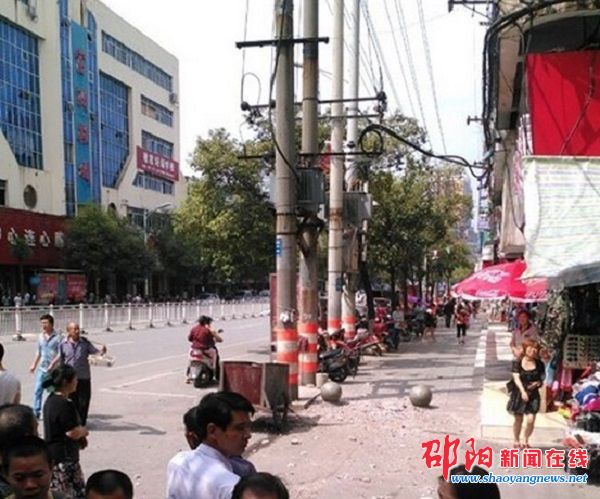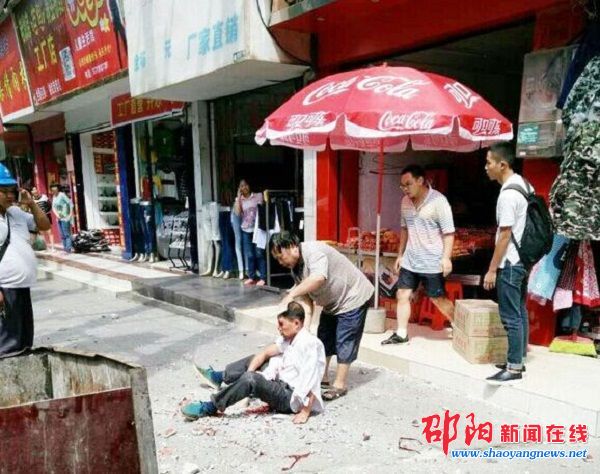 这天,隆回县县城农贸市场前街“某某某蛋糕店”所在楼房发生瓷砖掉落事件,掉落的瓷砖伴随水泥块片从天而降,砸到一过路老人头部,顿时老人鲜血直流,脸上、手上、衣服上都沾上了鲜血,地上也流有血迹。
