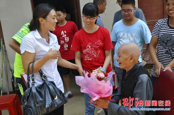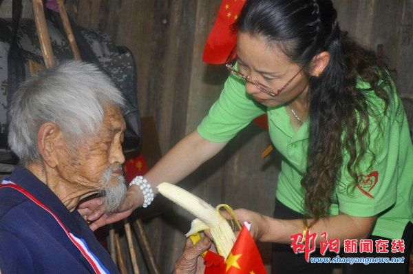 邵阳新闻在线讯(邵阳日报记者 袁光宇 通讯员 马霖 唐忠群)“爷爷,您吃根香蕉!”9月22日傍晚,一群志愿者来到洞口县黄桥镇101岁的抗战老兵肖堂保家,一边喂老人吃香蕉,一边陪老人聊天。这是今年中秋来临之际,雪峰山关爱抗战老兵志愿者协会倾情关爱抗战老兵的一幕。