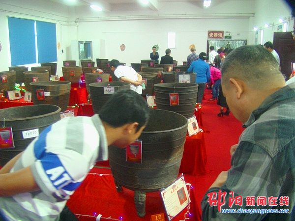 邵阳新闻在线讯(邵阳日报记者 袁光宇 通讯员 李斌)10月10日至14日,邵阳市绥宁县铁鼎缸民俗博物馆负责人、深圳海洋制品公司董事长谭方英收集的100口古代铁鼎缸在深圳展出。形状各异、年代不同、价值不一的众多铁鼎缸在展厅整齐列队排开,深受来自日本、香港等地客商的青睐。他们一致认为,这些铁鼎缸是一部会说话的历史,是古代文明的传承,其数量之多、年代之久,实为罕见。