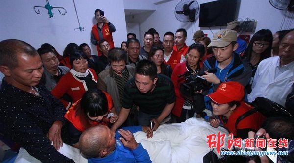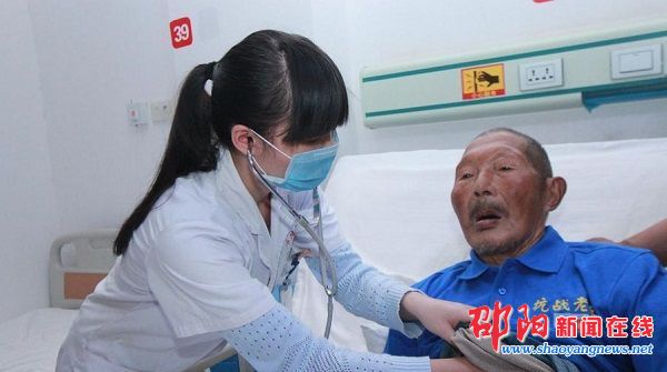 邵阳新闻在线讯(通讯员 曾勇)10月22日,邵阳县仁济医院,庹长发见到了从重庆老家来的亲人,至此,他已有77年未与亲人谋面。在医院认亲现场,从重庆赶来的庹长发侄子庹成拿出照片给庹长发比对。