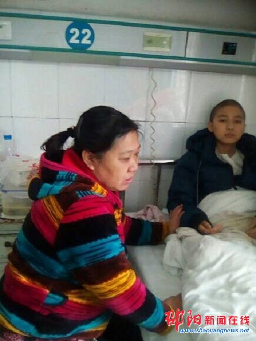 11月25日,经过一段时间的休养,曾美银身体稍微好了一些。夫妻俩将大儿子委托给老家的亲戚照顾后,带着最后东拼西凑的几千元,将小儿子送进冷水江人民医院,接受打针、输液等保守治疗,平均花费500多元一天,近十天下来,钱很快也将花光。
