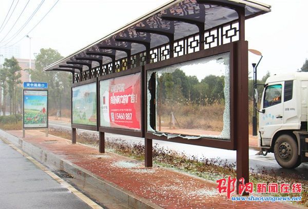 邵阳新闻在线讯(邵阳日报记者 童中涵)12月19日,有热心市民反映,邵阳市区蔡锷路上不少公交站台遭人恶意破坏,站台玻璃被整块敲碎,严重影响市容市貌。