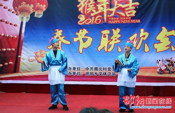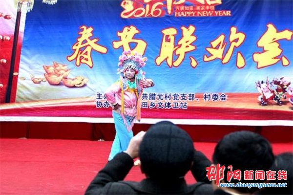 邵阳新闻在线讯(邵阳日报记者 陈贻贵 通讯员 杨坚 李中)“村里举办春节联欢会,虽然没有明星大腕,但节目都是村民自编自导自演,看着就很亲切!”1月31日上午,邵阳市新宁县巡田乡腊元村金叶广场上,77岁村民蒋冬妹坐在火箱上,撑着一把雨伞,眼睛直盯着舞台,笑得合不拢嘴。