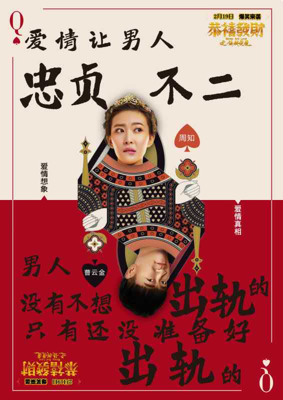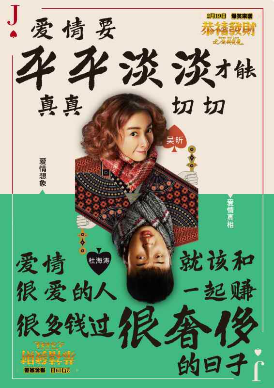 日前,由导演孙宏凯执导的爱情喜剧电影《恭喜发财之谈钱说爱》发布定档海报,影片将于2月19日全国公映。曹云金、周知、杜海涛、吴昕、吴宗宪、陈晓东、姜潮,苏醒,孙坚、张予曦、万国鹏、孙耀琦、李梦、Mike隋、李左飞、陈俊文等众星云集,倾情出演。该部影片风格幽默搞笑,紧贴屌丝创业、小三、办公室恋情、家长逼婚、坚持梦想等时下流行话题,以欢乐的方式再现了我们身边不同阶层的爱情百态。影片讲述的七种爱情故事紧贴生活,展现了城市务工青年、IT男、bra设计师、酒吧歌手、白富美、艺术青年等在面临生活、梦想、爱情困扰时做出的抉择。