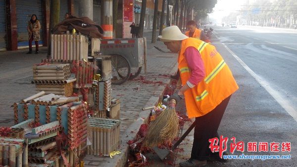 邵阳新闻在线讯(邵阳日报记者 伍洁)欢天喜地过春节,家家户户放鞭炮,然而,邵阳市民大量燃放烟花爆竹给空气质量带来污染,也累坏了春节期间坚守岗位的环卫工人。2月13日,市城管局透露,从农历腊月二十八到正月初一,市区每天清运烟花爆竹和生活垃圾1000余吨,是平常垃圾清运量的1倍以上。