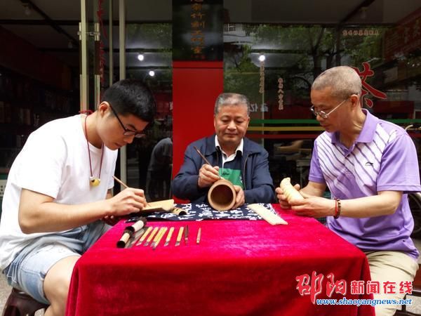 虽然这三人有着不同的职业、年龄和人生轨迹,看似没有人生交集。然而,缘于对宝庆竹刻的共同热爱,让素不相识的三人有幸走到一起并结为师徒,这在宝庆竹刻界传为一段佳话。