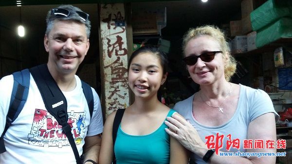 邵阳新闻在线讯(邵阳日报记者 袁光宇 通讯员 丁婧 刘郁)7月31日,邵阳市北塔区资园农贸市场沸腾了整整一个上午:一对荷兰夫妇带着16岁的女儿来到邵阳寻找亲生父母,热心的市民纷纷为其出主意、想办法,双方彼此吸引着、感动着,在这个资江河畔的小小农贸市场里,上演了一场现实版的“世界人民一家亲”。