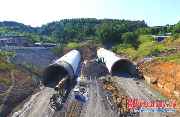 双清区新华南路是一条南北走向连接宝庆东路、邵阳大道和白马大道的重要通道,目前邵阳大道至白马大道路段已建成通车,大坡岭隧道正在施工中。隧道处于紫薇山下,贯穿紫薇公园,连通新华路。该隧道设计时速50公里,双向4车道,属于邵阳市区首条隧道。建成后将成为双清区老城区连接邵阳大道及市行政中心的便捷快车道,有利于缓解周边路网交通压力,为加速宝庆新城建设奠定了坚实的基础。