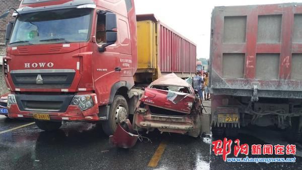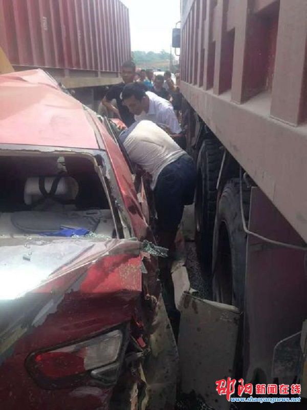 欧阳腾是广东省河源市东源县船塘镇人,在佛山市一家不锈钢生产厂工作,平时主要负责邵阳地区的业务。8月1日,他从广东佛山驱车到邵阳市区洽谈业务。2日中午,欧阳腾到320国道杨家垅路段旁的一客户店里拜访客户时,突然听到店外的国道上发出一声巨大的车辆撞击和急刹车声。