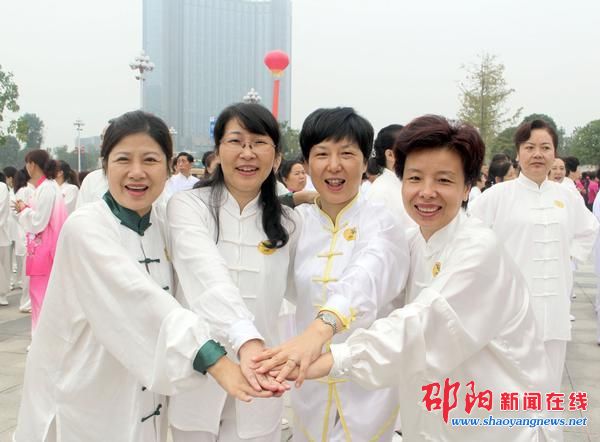 邵阳新闻在线讯(记者 袁光宇)10月15日,是湖南省全民健身运动邵阳与湘潭之间的挑战日。当天,300名邵阳武术健身者在爱莲广场表演的八段锦,彰显了邵阳作为湖湘文化发源地和核心区的博大精深,赢得了邵阳和湘潭人民的共同赞誉。在这支300人的武术健身队伍中,沉淀着太多的动人故事。其中,尤其以李志成,肖文炼、周海湘,蒋海燕、李娟三代健身人演绎的“情义邵阳”故事最为感人。