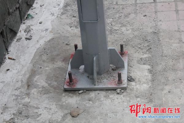 邵阳新闻在线讯(记者 伍洁)“近段时间,邵阳市区宝庆路沿线人行道上安装了许多视频监控立柱。但立柱的支撑板高于地面,而且裸露在外的螺丝有近10厘米高,容易造成安全隐患,希望有关部门重视整改。”10月15日上午,家住宝庆东路黄家山体育馆附近的李先生向本报反映。
