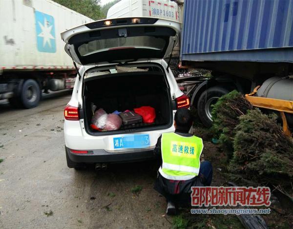 接到报警后,省高警局邵阳支队洞口大队民警立即赶往事故现场进行处置。