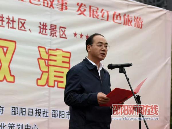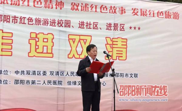 活动启动仪式由市政府副秘书长王成章主持,副市长赵为济宣布活动启动。市委宣传部常务副部长王化平为双清区赠送了文艺作品。会上,双清区委常委、统战部长黄美南、邵阳日报社社长肖秋成、双清区副区长胡迪芬先后致辞。邵阳市文联党组书记许洪范、邵阳市旅游外事港澳侨务局副局长刘金雄出席活动。传承红色基因,弘扬红色精神,发展红色旅游,邵阳日报社联合多家单位自七月以来深入各社区开展宣传活动,为邵阳建设“二中心一枢纽”贡献了力量。此次活动为系列活动第四场。