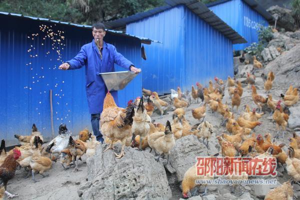 2015年6月, 陶显富一个人从外地买回650只雪峰黄羽乌鸡雏鸡,在自家的后山上搭建2间鸡舍开始养殖。同年10月,他又买回800只鸡苗。每天早上6时,陶显富就会准时起床,来到山上将鸡舍门打开,先给乌鸡喂一些玉米主食,然后乌鸡自己在山上觅食,17时后再将乌鸡赶回鸡舍。“成鸡每天喂2次食,小鸡每天喂3次,其余时间它们自己在山上找虫吃。”陶显富说。由于乌鸡每天在山上放养,大多数时间在山上吃虫草,来回奔跑运动,乌鸡肉质鲜美不油腻,吸引邵阳周边许多市民开车前来购买。