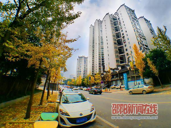 邵阳新闻在线讯(记者 罗哲明)11月19日,邵阳市区人大路两旁的银杏树叶把道路装扮得如同“金色大道”。微风吹拂,银杏树叶飘落在地,就像给初冬的大地铺上一层金黄色的地毯,令过往市民陶醉其中。