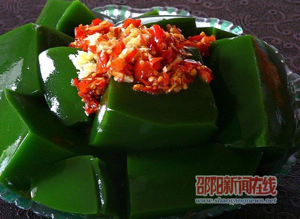 “神仙豆腐”树人称为“神仙树”,其学名叫“双翅六道木”、“黄荆枝”、“黄荆叶”、“蚊枝叶”、“白背叶”、“姜荆叶”、“埔姜叶”、“姜子叶”等,属忍冬科灌木,是一种中药材。多生长在海拔2000米以下的山坡、路边、沟边杂林中或灌木丛中。叶子可制作“神仙豆腐”,供人食用。制作神仙豆腐时,先将新鲜神仙树叶去叶柄洗净沥干倒入桶内,再倒入开水,水量约为叶子的5倍,用木棒将叶子捣碎搅成糊状,将糊状树叶倒入豆腐布中,用手挤压出汁液,反复几次到树叶无法流出浆汁为止。等滤后汁液的温度降至30℃左右,加入备好的柏树、草木灰水,边加边用手搅动,待搅匀后放在阴凉处冷却凝固。2小时后,一盆绿若翡翠、细软柔嫩、状如凝脂的墨绿色豆腐已然成形。据了解,神仙豆腐富含果胶、粗蛋白质、可溶性蛋白质,有退火、清凉解毒功效,适宜夏季食用。神仙豆腐色泽淡雅、清香味浓,其色如翡翠,呈半透明固体。将它用刀片切成小块,浇上油辣子、醋和蒜泥,吃起来味道清冷爽口,是一道民间美食。有退火、清凉解毒之功效,适宜夏季食用,长期饮用保健效果显著。