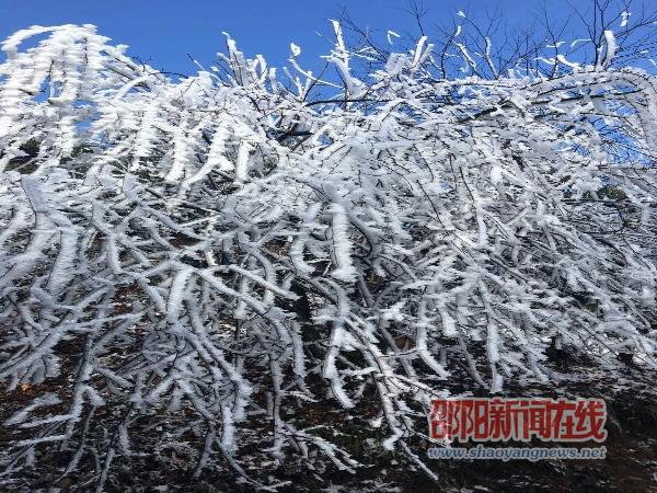 邵阳新闻在线讯(通讯员 朱跃权)许久没有放晴的天空总算露出了笑脸,11月27日,笔者邀请几名摄影爱好者清早登山拍雪景,山顶上气温很低,一眼望去云山雾凇皑皑、冰清玉洁,到处白茫茫的一片,真为家乡有这么美的景色感到高兴,希望家乡建设越来越好!远方的朋友们,大美武冈云山绝色雪景等你来欣赏。