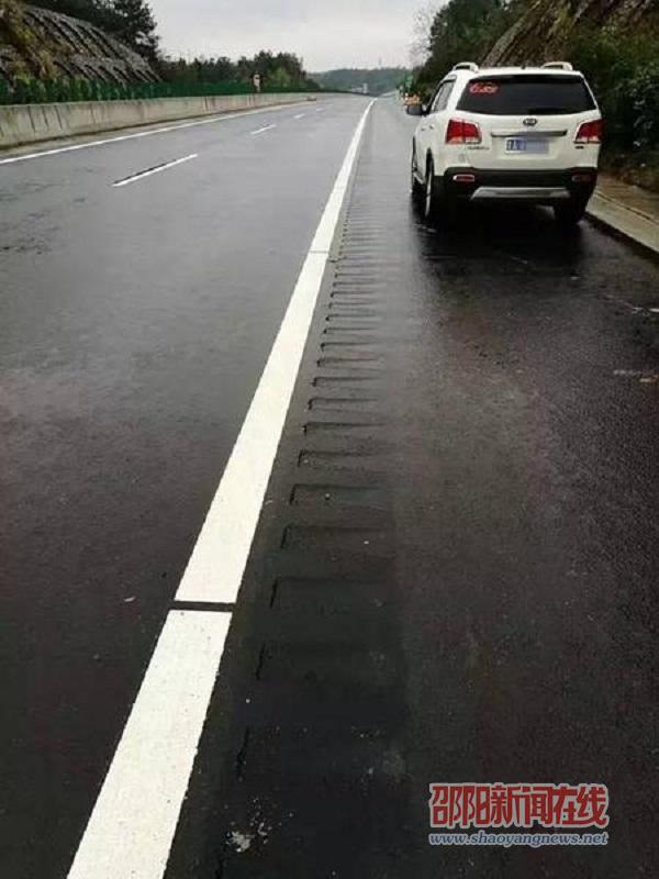 “隆声带”设置在道路右侧,行车道与路肩之间。这种隆声带凹凸不平,如果有驾驶员行驶偏航了,就可以立刻感受到震动,回到路中来。