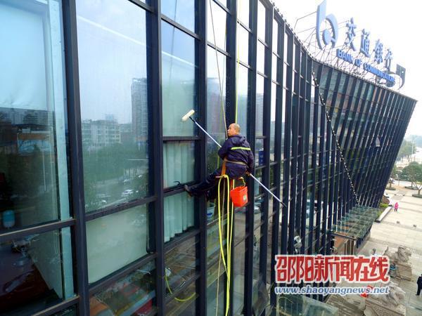 祝先生是一家清洁公司的工作人员,当天早上7时30分左右就过来清洗外墙了。他认为高空作业,关键是要控制住自己“恐高”的心理。一个副作用就是工作久了,手抬起来都是酸痛的。为了尽快完成对高楼的清洁工作,祝先生这两天一直在扮演“蜘蛛侠”的角色。