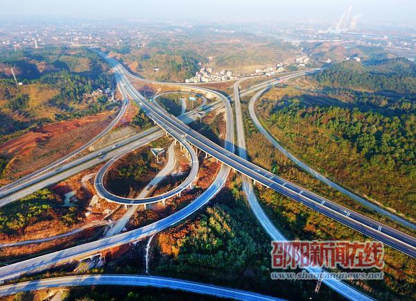 邵阳新闻在线讯(记者 申兴刚 )近5年间,邵阳市交通基本形成以邵阳市区为中心、以沪昆高速为东西轴、以二广高速为南北主轴,畅通各县市,辐射长株潭、珠三角、长江经济带、大湘西及东盟地区的公路主骨架。当前,我市致力打造高速公路“三纵三横两连”、国省干线“三环三横三纵”、农村公路联网等工程,加快完善综合交通基础设施网络,提升交通运输供给能力和服务质量。图为航拍下的梽木山互通。