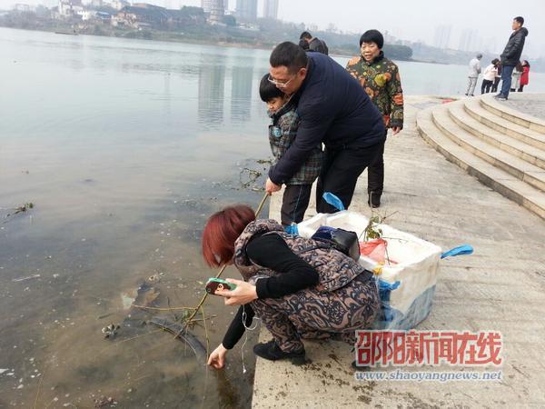 邵阳新闻在线讯(记者 贺旭艳)双清公园附近的沿河风光带真漂亮,水上漂浮的垃圾却大煞风景。1月23日上午,在此游玩的市民带着孩子将够得着的垃圾顺手捡起来,不经意就上了一堂生动的亲子教育课。城市文明靠大家。稍稍用心,一家人就留下了一份美好的记忆。