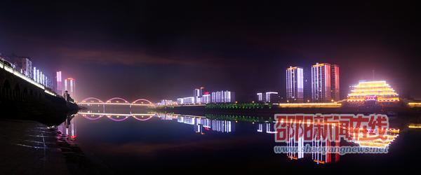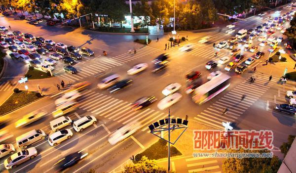 邵阳新闻在线讯(记者 罗哲明)春节临近,夜幕下的市区有了新变化,亮化工程使城区主要街道灯火辉煌、流光溢彩;资江两岸缤纷闪耀、交相辉映,给这个寒冷的冬天增添了许多喜庆、和谐的气氛。图为1月23日,华灯闪耀的市区西湖路与宝庆路交汇处。