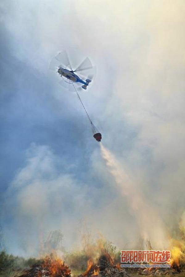 2016年9月2日,洞口县举行我市森林消防首次空地“立体灭火”实战演习。演习模拟在洞口林业机场铁甲山突发森林火灾,县林业局、森林公安局、森林防火应急分队、消防武警中队等部门按防火应急预案,立即赶赴现场进行抢险。随后,省航空护林卡-32直升机赶赴现场,实施吊桶灭火,空地配合密切,安全高效地完成了此次地空“立体灭火”实战演习任务。(罗哲明)