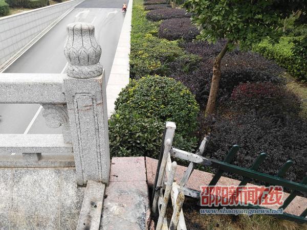 2月8日中午,记者来到小俊出事的魏源广场天桥上看到,天桥西侧是一排花岗岩的护栏,在邻近护栏北端旁是一个斜坡绿化带,虽然绿化带周边也安装了护栏,但是天桥两端的护栏和绿化带护栏中间有一个数十厘米的缺口,由于缺口处没有设计安装防护栏,小俊就是从这个缺口处失足坠亡的。绿化带四周的侧石是光滑的瓷砖铺成,如果有小朋友在天桥旁侧石上玩耍,会有较大风险。