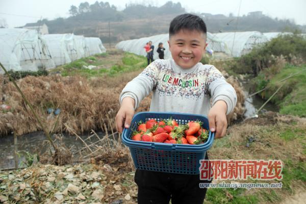 邵阳新闻在线讯(记者 陈贻贵)“哇塞,这里的草莓好甜哟!”2月18日下午,新邵县雀塘镇兰江村百余亩成片的草莓园里,络绎不绝的游人穿行在草莓大棚里,尽情采摘、品尝草莓,体验春季采摘游带来的乐趣。