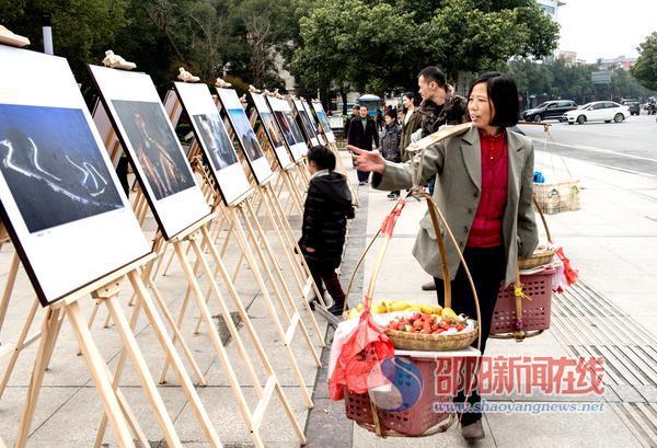 邵阳新闻在线讯(通讯员 张光)3月8日,一卖水果的妇女,从邵阳市区城南公园摄影展览区经过,被那些精彩作品吸引。当天,摄影艺术展览在此举行,展出的100幅作品贴近大众、贴近民生,传递了“人民性”的正能量。