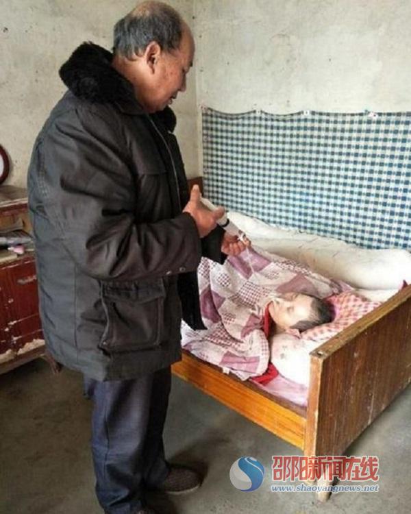 邵阳新闻在线讯(通讯员 罗中利 张敏 谢定局 伍国栋 刘婵)他的妻子瘫痪、身体僵硬、整整卧床七年,只有转动的眼球还能证明她生命的存在。在这2500多个日日夜夜里,他每天喂药喂饭,悉心照料,每天准时为妻子翻身、擦拭身体、换纸尿裤防止褥疮,将食物搅拌成流食通过注射器喂食给妻子,用深沉的爱与坚毅的信念延续着妻子脆弱的生命。