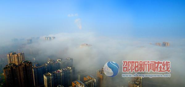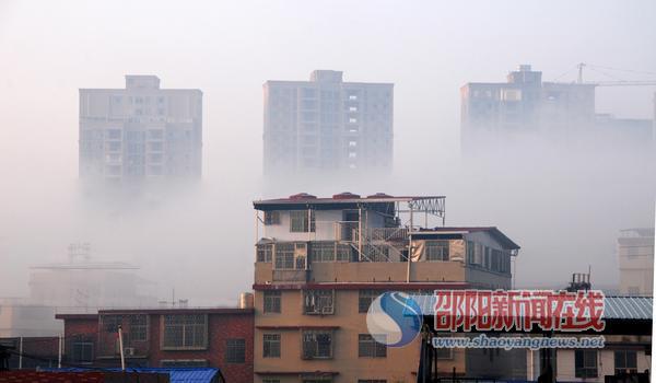 邵阳新闻在线讯(记者 谢冰 欧阳德珍)4月13日清晨,从6时多开始邵阳市区便开始慢慢起雾,大雾笼罩在城市上空,并慢慢向东飘去。