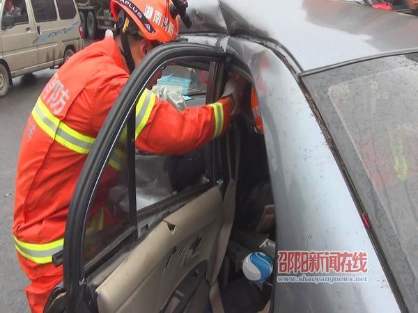 邵阳新闻在线讯(记者 宋三刚 刘深根 )4月17日8时40分许,邵阳市敏州西路大祥区政府附近十字路口发生一起交通事故。事故车辆左侧变形严重,造成车内一人被困。接到市消防支队指挥中心调度后,大祥消防中队立即出动两台消防车10名官兵赶赴现场救援。救援过程中,消防官兵利用液压破拆工具组对车身变形部位进行扩张。经过10分钟的紧张救援,消防官兵成功救出被困人员,并将其送上救护车。目前,这起交通事故的具体原因还在调查中。