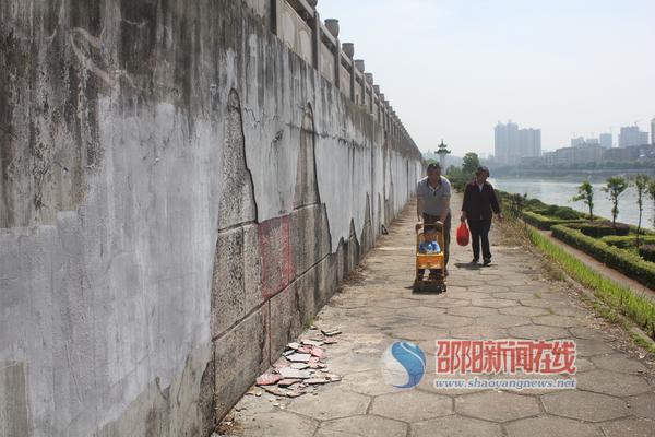 邵阳市民反映 江北防洪堤墙面水泥大面积脱落