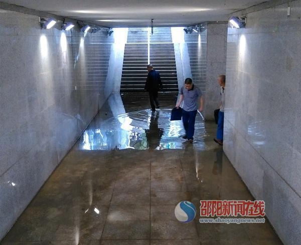 邵阳新闻在线讯(记者 宋三刚)6月6日,邵阳市区敏州路与西湖路交叉口附近的地下通道出现积水,过往市民只得“点水”而行。
