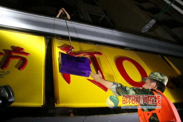 离开赵先生家后,陈思谋和战友再次扯开喉咙,询问是否有受困市民需要盒饭。没多久,全部盒饭陆续被送完。一位被困的邵阳学院退休教师邓奶奶受到盒饭后,对着窗外大声喊道:“谢谢你们!”