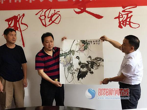邵阳新闻在线讯(记者 袁光宇 实习生 郭盈 张佳伟)7月6日上午,邵阳市文艺界爱心捐赠人士齐聚市文联会议室,举行了一场爱心字画捐赠仪式。